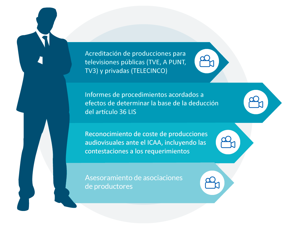 Somos especialistas en el sector audiovisual. Tenemos 20 años de experiencia en justificaciones de ayudas y subvenciones de los principales organismos públicos autonómicos (Instituto Valenciano de Cultura, Instituto Catalán de las Empresas Culturales, Gobierno de Canarias, Agencia Andaluza de Instituciones Culturales…), así como en reconocimiento de costes de películas antes el ICAA.